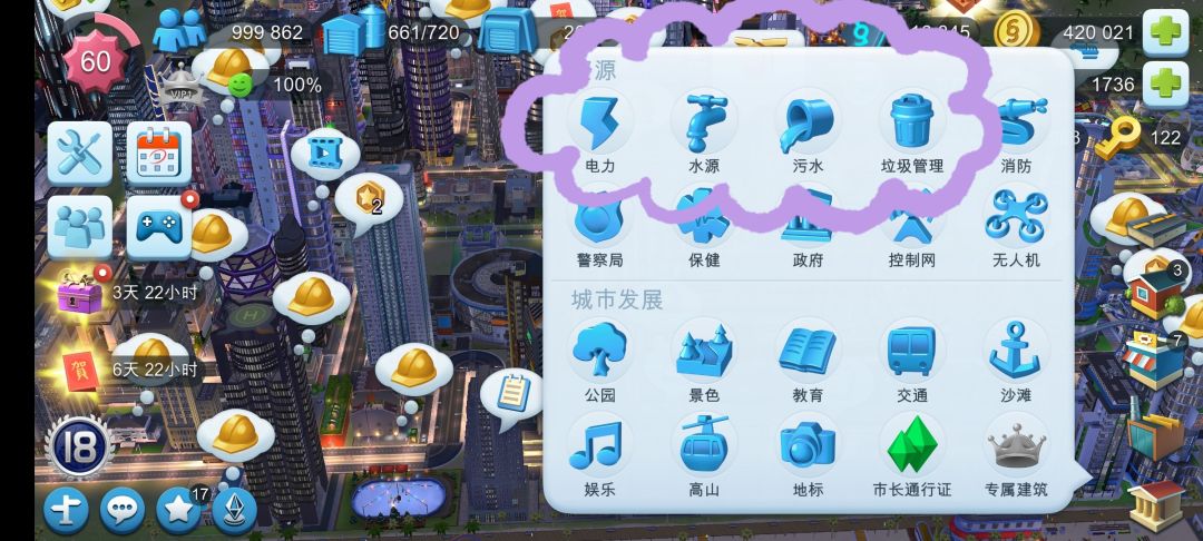 这个游戏它设计了一个满级居民楼数量上限,每个等级可以拥有的满级居民楼数量是有上限的,超过这个数量上限的居民楼就不会弹满级小黄帽,每升一级上限数+1,这个上限是多少级就能造多少满级居民楼(比如玩家16级,那玩家就只能造16栋满级居民楼) 这个隐藏设定首都地区和开元地区通用
