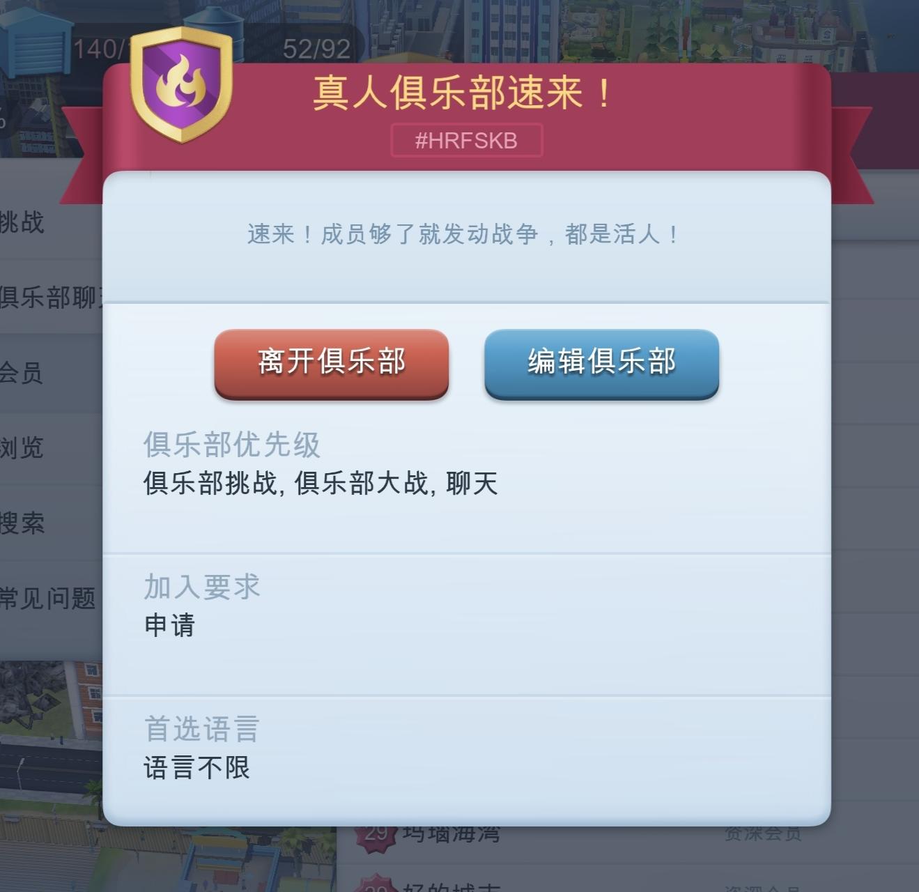 有没有人加俱乐部呀,打战争做挑战极度缺人呜呜呜呜,俺想要赢,有没有人来啊