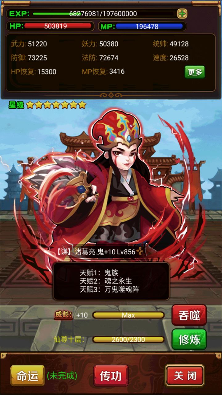 鬼诸葛 300级以上 必备功法: 九字真言:1000级,冰封:10级, 永恒不坏身(越高越好), 一气化三清 1000级(最少250级)