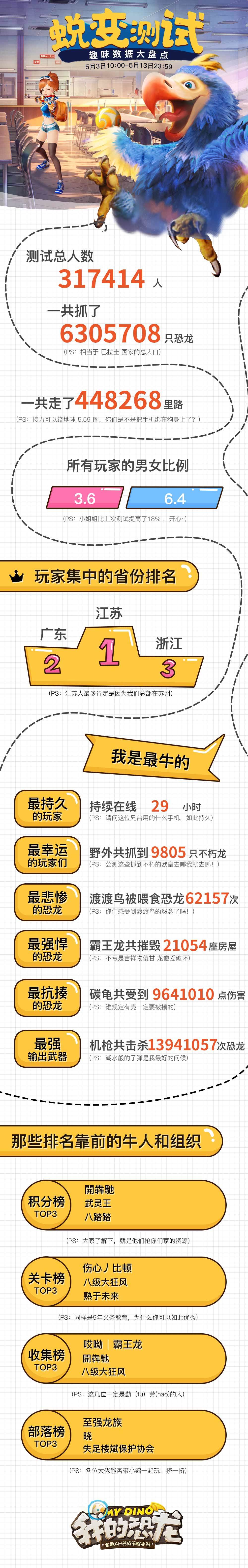 《我的恐龙》于3月23日开启了“安卓删档计费成长测试”,各大安卓渠道给予相当大的支持,热情的数十万玩家积极的参与了本次测试并给我们提供了相当多的建议与反馈。 ▲我们将于4.1日(晚24:00)关闭所有测试服务器▲ 全体开发组也借此机会感谢玩家的支持,我们将进入正式公测前的冲刺阶段,本次测试暴露的闪退、卡顿等bug依然存在,这可能需要几周时间去做深度优化。 你是不是觉的我接下来要煽情,祈求各位玩家大