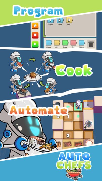 Use simple commands to program cute bot to cook delicious dishes. Those tireless cute machines are always preparing food with a smile on their face. You will receive income from your restaurants while you are idle. ...