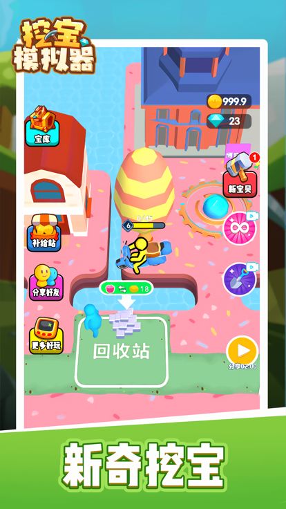 《挖宝模拟器》是一款画风可爱的模拟经营类小游戏,玩家在游戏中扮演一位有着精明头脑的商人,通过挖掘土壤,收集里面的矿藏和宝物,兑换金币,开启自己的矿产事业,接连不断地开启新的高价值矿脉,打造令人震撼的矿业帝国。游戏中还有博物馆可以展示挖到的宝物,看看你能收集到多少宝物呢?