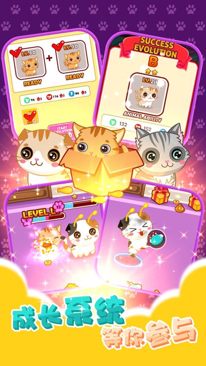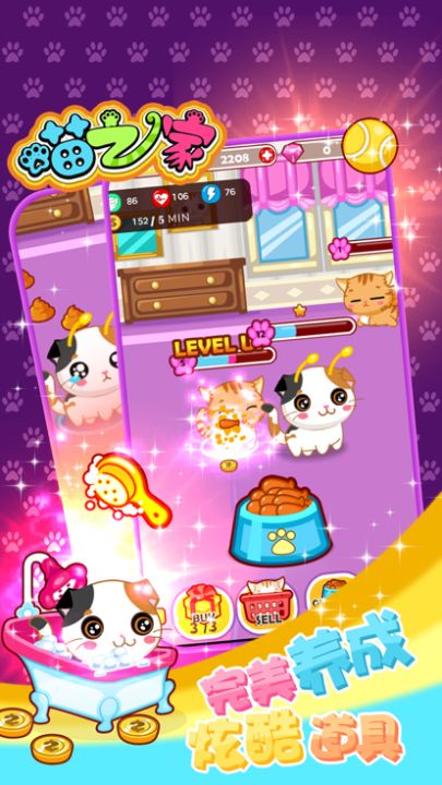 的小屋子。你要照顾它,陪它玩,给它喂食,洗澡,治病,陪它进化,还可以带领它参加比赛哦,同时你也可以为猫咪选择小伙伴,假如有一天你不喜欢它了,你可以将它卖回商店!