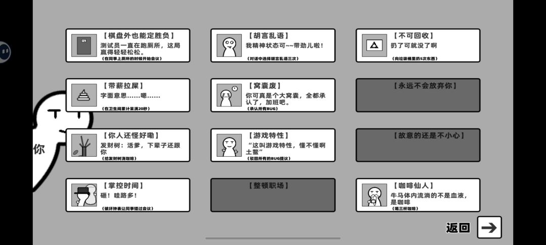 物品出现的地点随机刷新,我二次进不一样了 鱼竿带去树屋后面钓鱼,然后去伐木场后面瞭望台那喂猫,瞭望台可以得到双筒望远镜(第一次进兔子会关门,出来的时候从挨着铁丝网的木材堆上跳出来不用走门) 汽油桶带去伐木场,钻进木道(用砖头砸通),倒进发电机,发电机对面能伐木头,出来去上面开开关(外面桌子上有钥匙)伐了木头,它挡着的门就能进 到树屋一下自行车,旁边有个木屋,左边窗户是破的,从那扔砖头砸门,可以开门