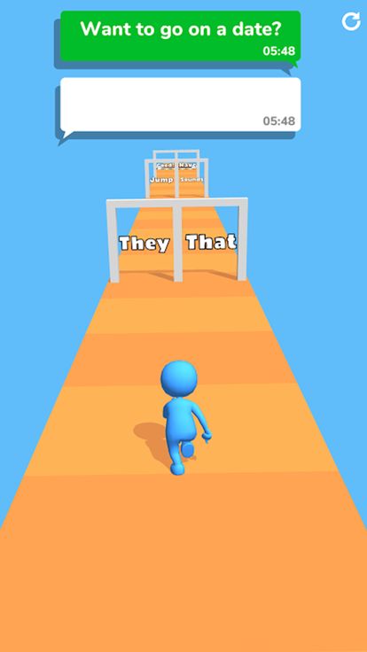 Drag your finger left and right to collect the right words to reply to the text messages. Can you put together the right text message while you run?