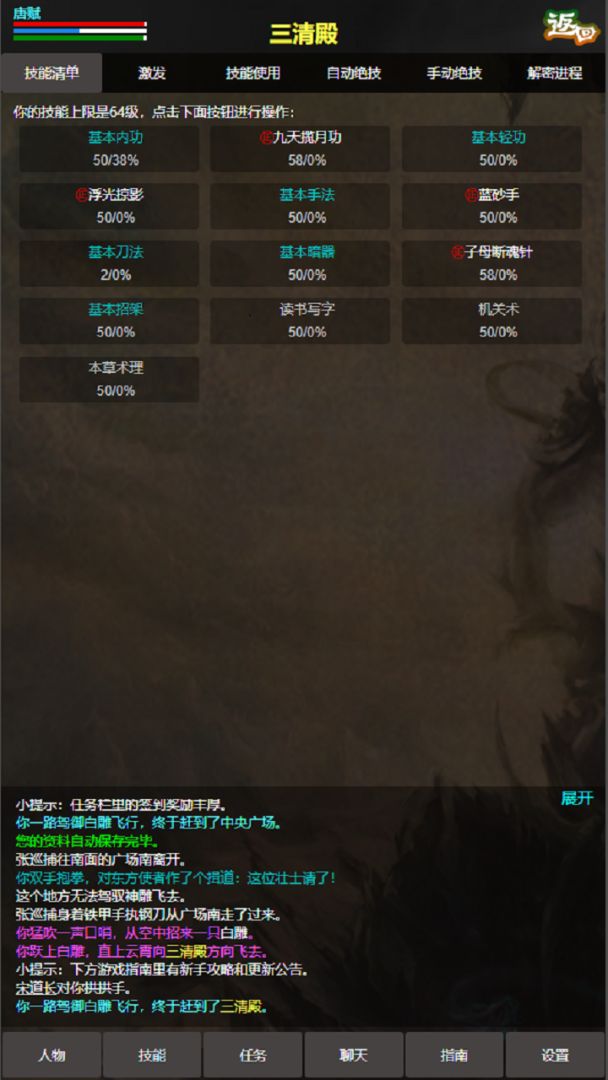 隐私政策 开发者的话书剑世界将曾经风靡网络的书剑mud进行了大量的优化和完善,在移动端给大家带来全新的体验。 你是否还记得大理王府送信任务?雪山抢美?华山惩恶扬善?武当锄奸?颂摩崖对抗一品堂武士? 这些任务和玩法都已经被充分优化,既保留了原有的mud武侠精髓,又省去了琐的操作,就算是一个mud新手,也可以在手机上轻松玩耍起来。 新增的附近地图和城市地图显示,非常奈斯。 现已经将一个包含技能体系、任务系统、副本系统、装备系统、经脉系统、被动系统、家园建设、帮派建设、人际关系等众多玩法的游戏呈现给大家,希望大家能够喜欢。 本游戏将持续更新!