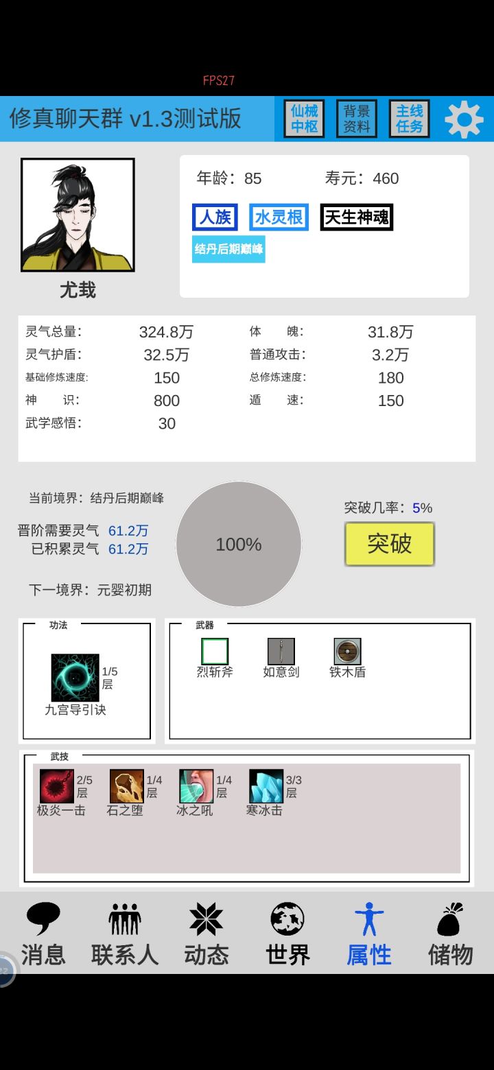 角色,一诞生,直接消耗寿命,不换功法与武技,换灵气,直接破化神,建议元婴后期时(必换功法与武技),地图找到九转🥚,不然到化神看命,进炼虚,基本就是猝死都不可能,合体做梦都别想见了,大乘不要喊666,渡劫作者暗地支持你。