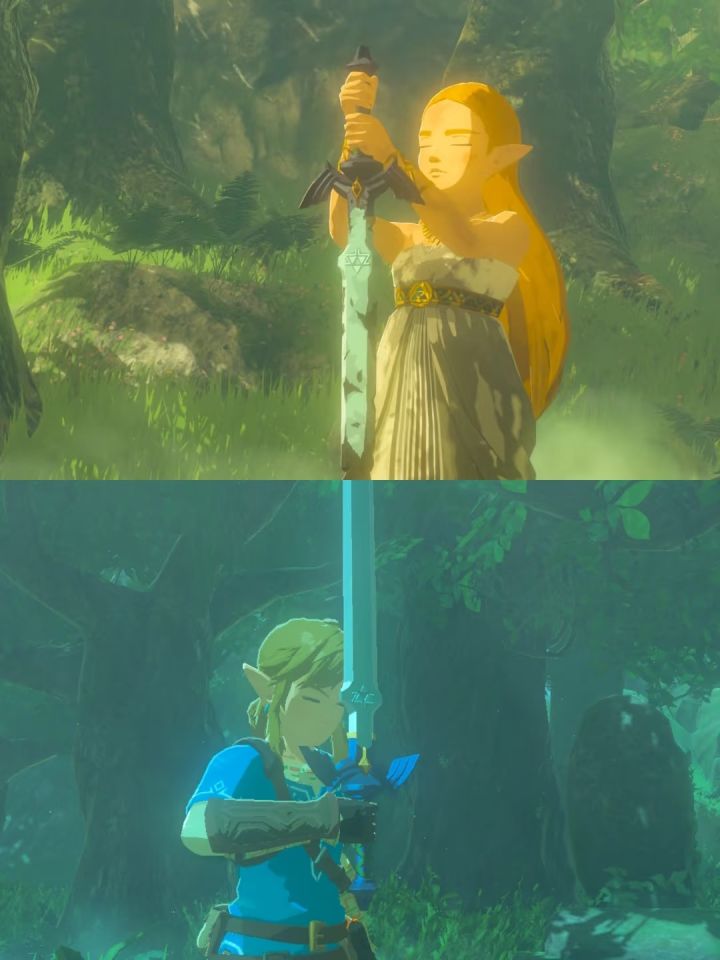 跳下空岛,登陆入湖。肉眼可见部落和人烟,不仅是可互动的NPC多了,就连林克寻四贤者充当小弟很好补充了伙伴这一角色,数以百计的迷宫,全新的武器和载具,海拉鲁大陆迎来了新的篇章。