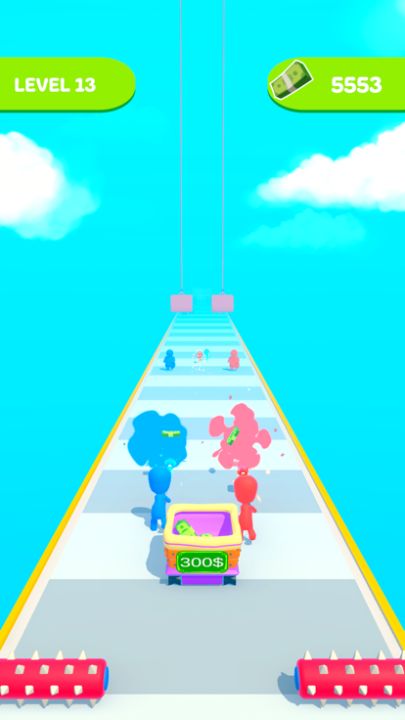 Blue and red couple on the action! Don't let anybody steal your money, Slide your characters left and right Pile all the money in your carriage!