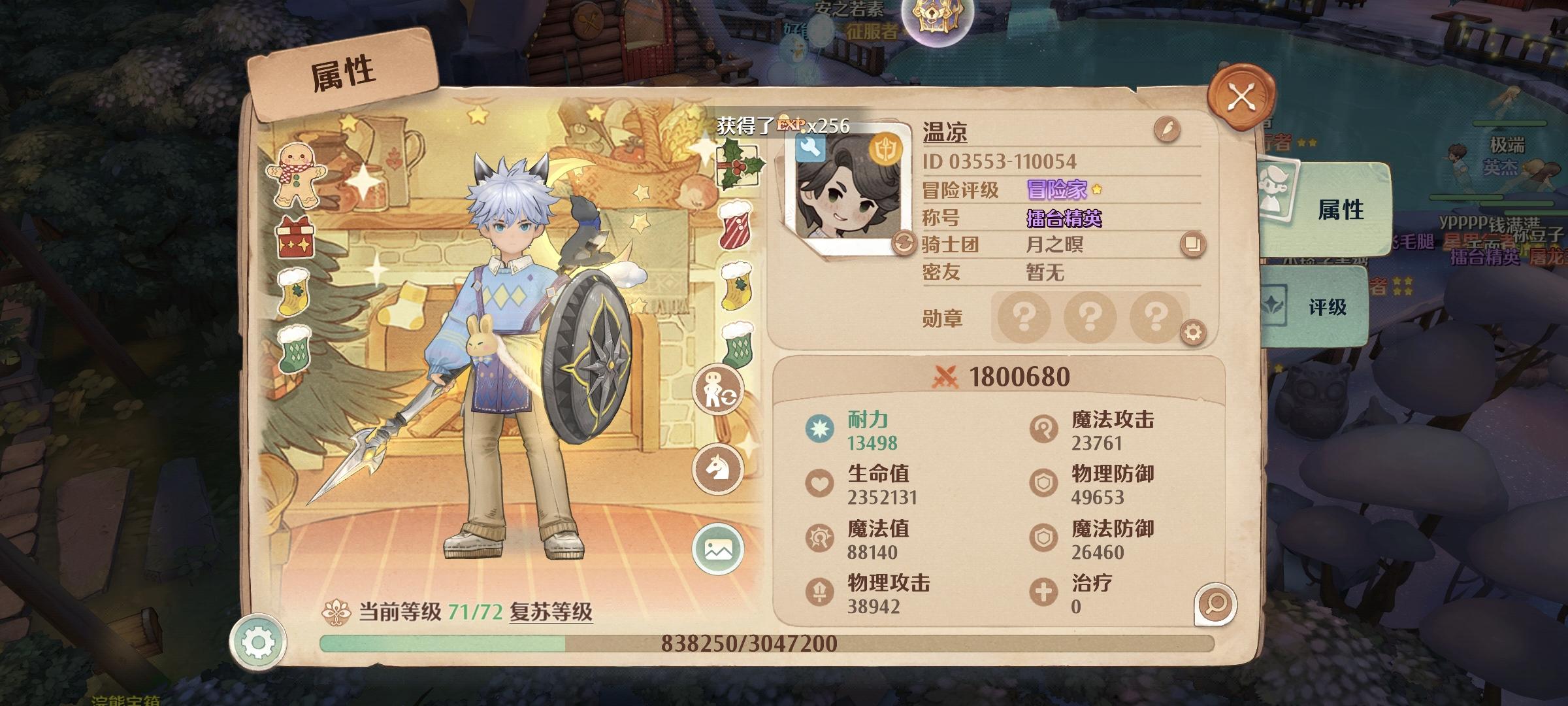 依旧猛攻战力,猛打副本。就是黑了点,自己爆率极低,预定装备也一直失败,过渡到70级金装任重道远。除了副本各种跪求大佬带着打,在骑士团依旧充当讨口子角色,衣柜战力全靠大佬施舍。不过也并非一帆风顺,小镇辗转三地,第一个小镇镇长主动让我出走,说他继承的这个小镇原本成员已经全部出走,只留他双开支撑,根本打不了卡卡快跑。目前战力增长已经缓慢了很多,只有爆出金装才能提高一些。幻果和花御升星都太吃时间了,
