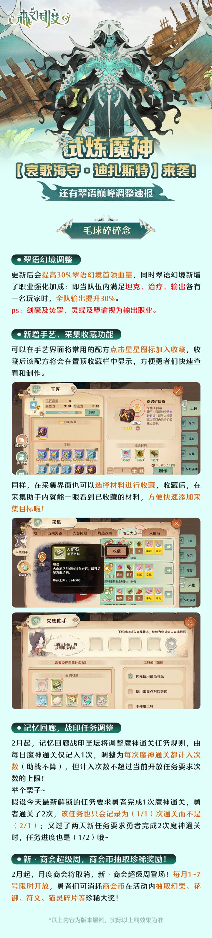 试炼魔神 【哀歌海守·迪扎斯特】来袭!还有翠语巅峰调整速报哦~