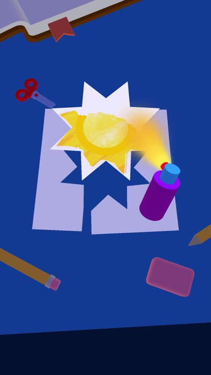 Use the scissors to cut the paper into interesting forms, paint the forms with different colors and stick them to the book to make beautiful appliques.