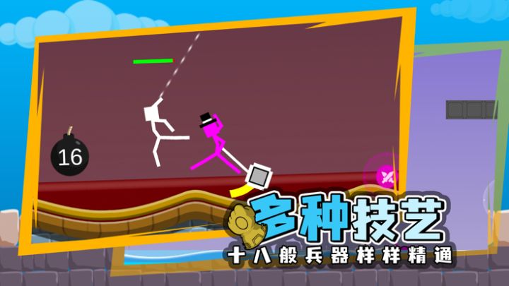 玩家操作摇杆控制火柴人移动,击败对手为胜利。