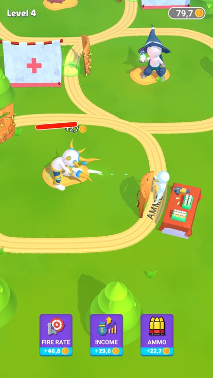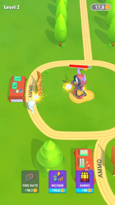 Tap&Hold to Run and dodge the attacks,Hold your position to attack,Use buttons to upgrade your power.