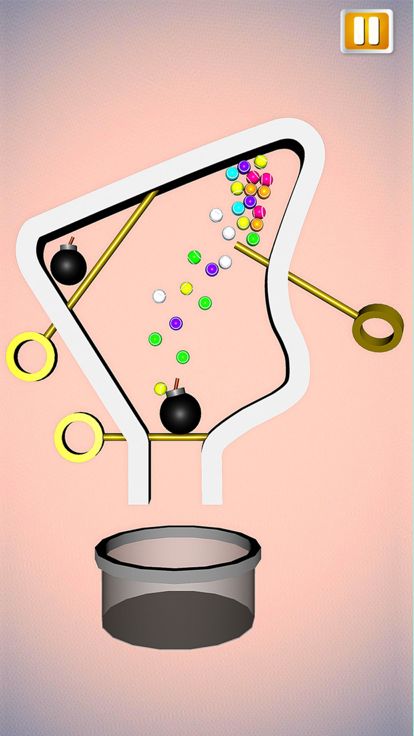享受惊人而有趣的益智游戏,并在此惊人的拔针游戏中测试您的大脑。 您所要做的就是小心地拉出销钉,使球落入下面的铲斗中。 首先合并有色球,为无色球着色。 当心炸弹! 不要拉错别针,否则炸弹会掉落并破坏您的连胜纪录。