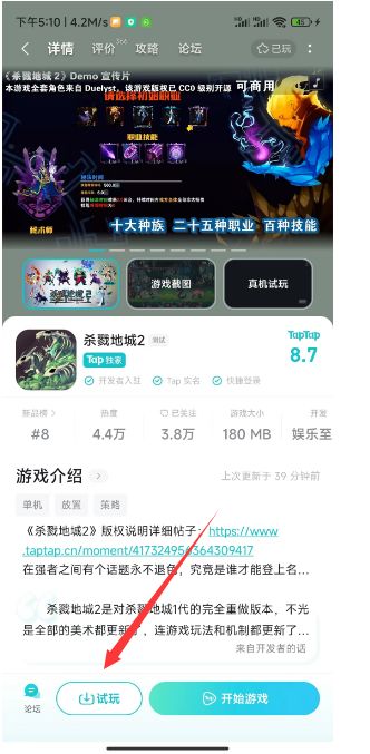 新版游戏加入了TapPlay功能,如果您想安装独立包,或者存档丢失等现象,需要点击Tapplay旁边的试玩按钮就可以安装独立包了