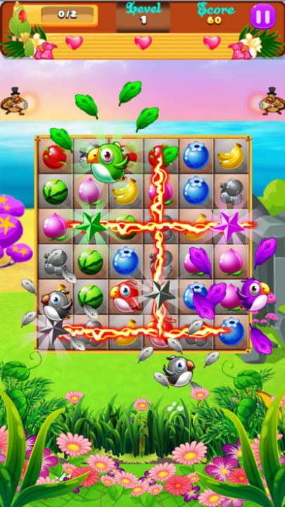 - 你只安排小鸟和水果同色救他们,你传递的水平,当你拯救足够的目标鸟类。
