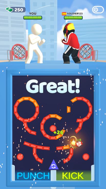 Outsmart your opponents in this puzzle fighting hypercasual game! Upgrade your fighter, play versus other players, unlock different costume and become rank one!