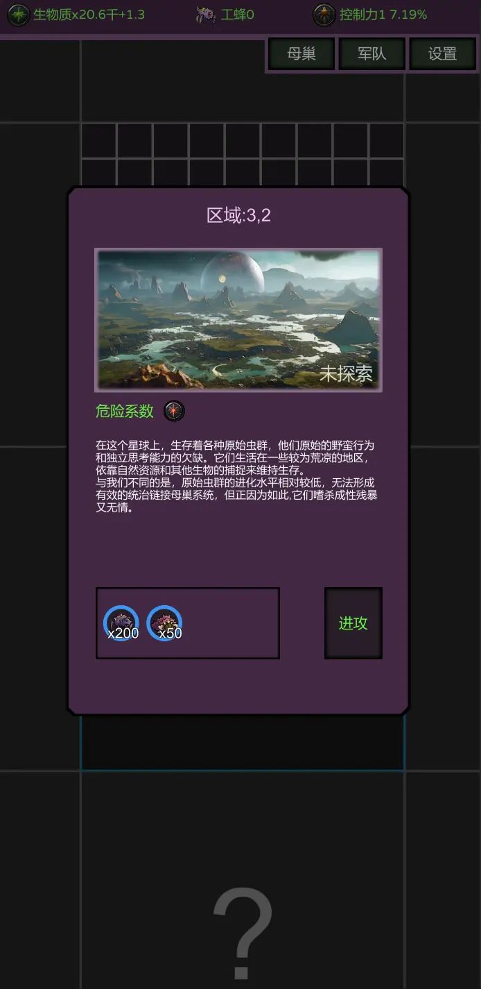 🎮名字:星际虫群 母巢扩张✅️平台:移动端(预约中)🏷️标签:星际模拟经营、虫群扩张、策略战争、深度运营------👉《星际虫群 母巢扩张》来袭!指挥虫群,征服星际,书写星际传奇!-✨【游戏内容】✨星际模拟经营:3900格超大地图,自由建造,管理虫群产业链。✨征服扩张:从一小块地开始,通过征服、统治、殖民,逐步掌控全宇宙。✨深度运营:高度自由的操作空间,每个决策都影响虫群的发展。