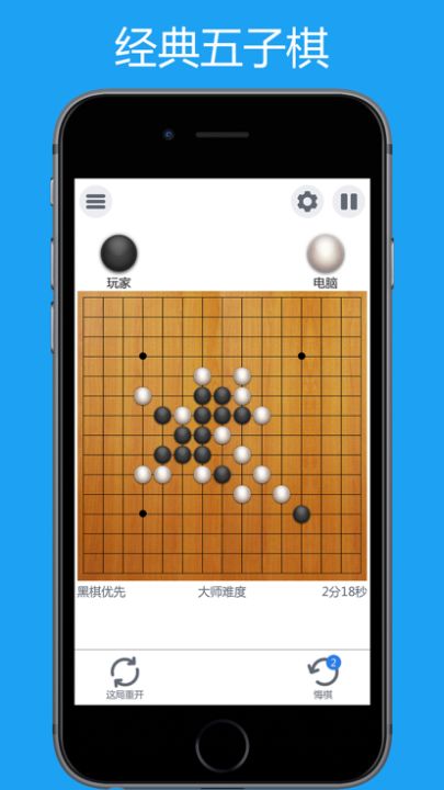 五子连珠,黑白两色攻守变换;