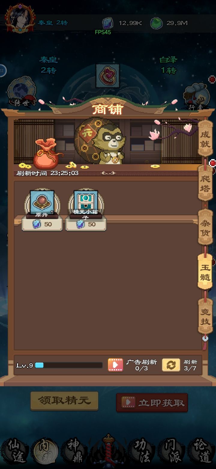 为什么说五行不要合成 当然你想要哪几万精源可以去合成 现在说说为啥 商店里面你卖一个十级的珠子是1000 你买一个11级的珠子只要1200 也就是说合成要两个十级 而商店等级高了是能刷新出高等级珠子的 所以打出来的珠子别合成直接卖了去刷商店 我合到30级才发现 顺便说个论道bag 晚上十二点不从新上线因为我看了三个广告所以可以在打10几次 然后重新上线又可以刷新出8次 昨晚刚刚发现 不确定是不是一