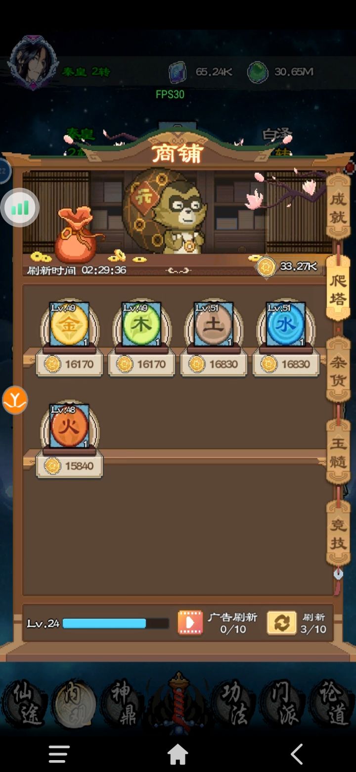为什么说五行不要合成 当然你想要哪几万精源可以去合成 现在说说为啥 商店里面你卖一个十级的珠子是1000 你买一个11级的珠子只要1200 也就是说合成要两个十级 而商店等级高了是能刷新出高等级珠子的 所以打出来的珠子别合成直接卖了去刷商店 我合到30级才发现 顺便说个论道bag 晚上十二点不从新上线因为我看了三个广告所以可以在打10几次 然后重新上线又可以刷新出8次 昨晚刚刚发现 不确定是不是一