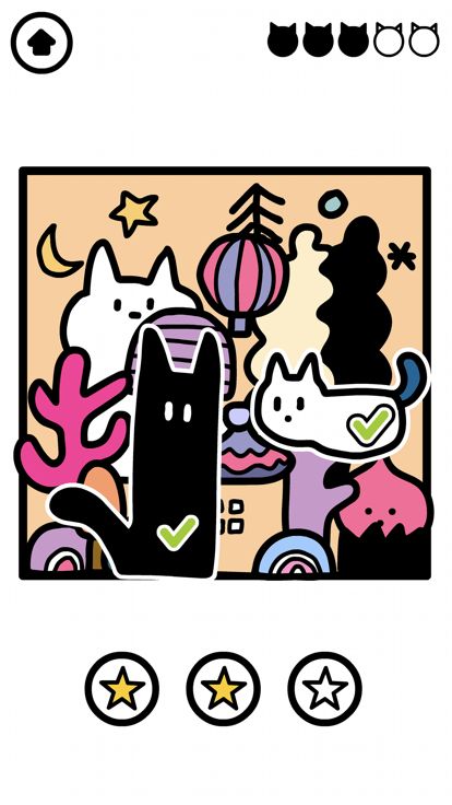 找猫猫是一款在插图中寻找隐藏在图中猫咪的游戏,每一个游戏关卡需要找到3只猫咪才能通关成功,在欣赏有趣的插图的同时在图中发现可爱的猫咪吧!