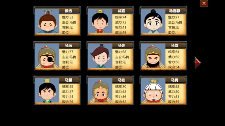 收录了三国时期所有的官职和爵位,700名武将,并且支持随机武将录用。