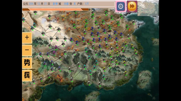 这个游戏自动保存,没有载入存档的选择。这样的目的就是增加游戏的难度,玩家的每个决定一旦做出就无法修改,当玩家选择弱小的势力进行游戏时,一定要注意每一个命令的下达。