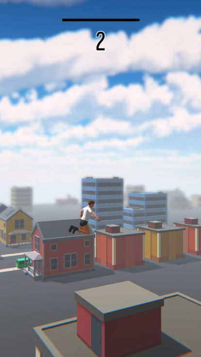 每通过一个房顶则通关一个关卡,但是也需要注意后面,有个会飞的敌人正追着你.