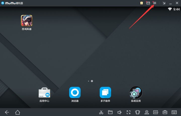 游戏开测以来,受到广大玩家的喜爱,也有不少模拟器玩家反馈到模拟器运行不了游戏的问题,我们《西域英雄》的运行内存需要2G,模拟器的默认设置一般为1G,在此给大家讲下模拟器的修改设置,以MUMU模拟器为例:1. 首先打开MUMU模拟器,红色箭头指向--”菜单”;2. 然后点击”菜单”列表中的”设置中心”;3. 接着点击”高级选项”4. 性能设置中点击”自定义”选择2G内存设置5. 最