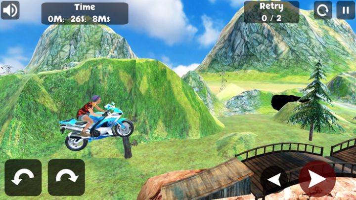 控制摩托车极速加速或倒车,在空中控制车子旋转,使其平稳着地。