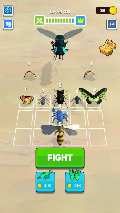 Gameplay is straightforward; decide who will fight for you to win the game. Want to get stronger? Use strategy and merge identical insect soldiers.
