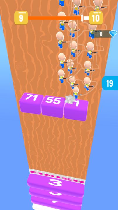 Plan the right combinations on the boosters, multiply your crowd, destroy the obstacles and reach the finish with the maximum number of pickaxe guys!