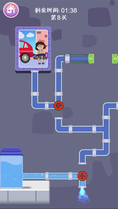 小美现在想要洗澡,但是水管坏了。你帮帮到她吗?