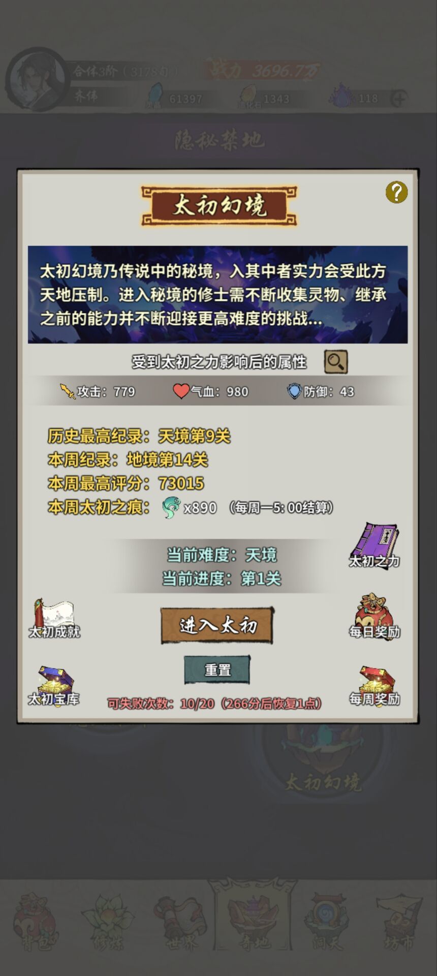 总而言之呢,太初还是继承了这游戏其他玩法中究极拼脸的核心设计思路。 所以想冲高分,凹是不可避免的。 先上个分数图。 然后是配置。 武器的风是必备的。 职业选魔。 差不多就是深渊的配置。 这一局我是满血流装备打的(之前在打深渊)。 一血流感觉上限会更高。 护腕还是建议掉血护腕,不建议无双。 原因下面会讲。 接着是思路。 首先凹分的大头有两个:结尾段的斩杀和结算时选随机的奖励。 需要注意的就是总体上看