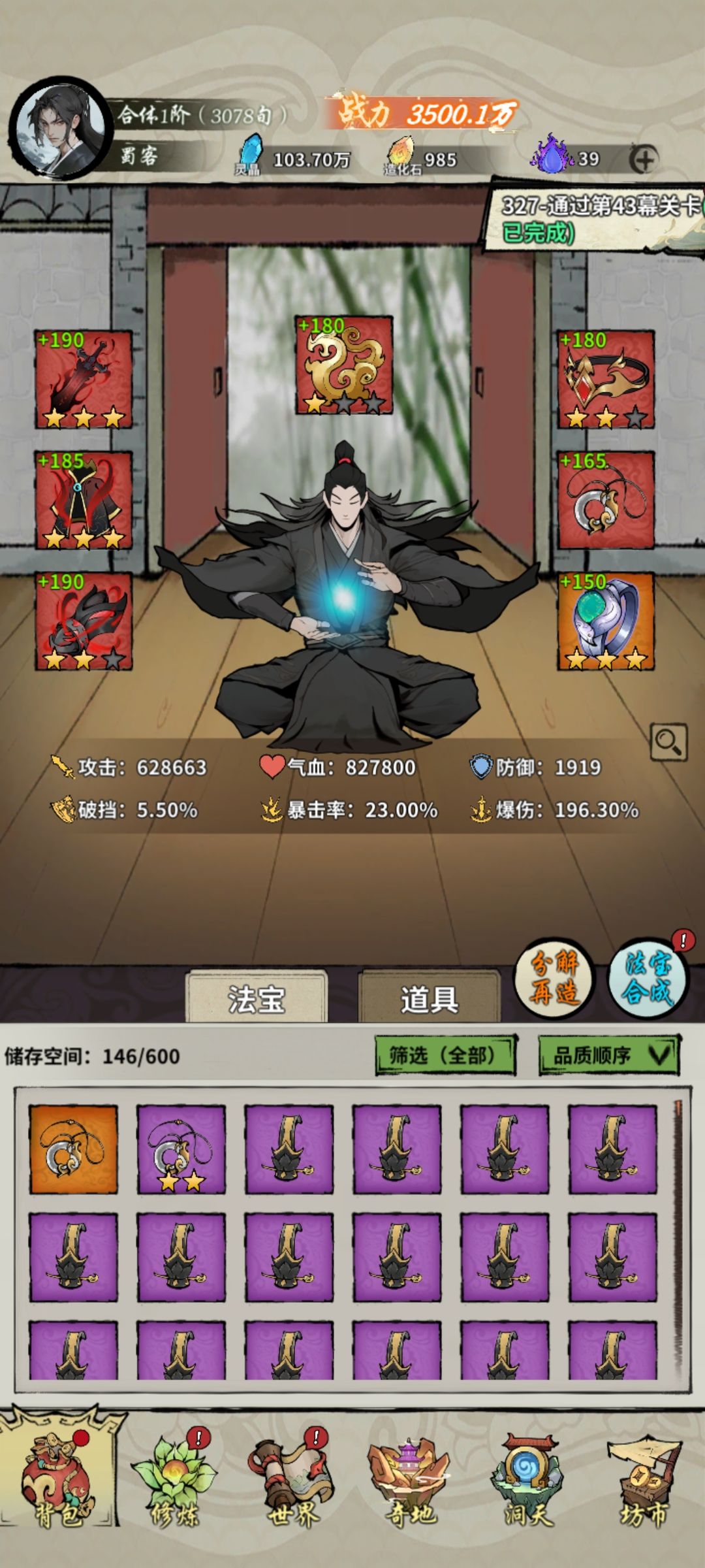 开局加祝福进图61暴击,70多暴击都没打过,破挡也得堆到50以上,不然太多格挡 53慕出门很难,开局3精英必须空位打不死,后面老鼠也要看运气,路上捡暴击很少,好在修为进阶天赋7暴击5暴击,10增伤,15破档,复活前打不到380亿就没希望,凹了一天的体力好在凹过去了称号也刷到顶级了(暴击得高才能打过boss46-47慕都能刷出来),彻底躺平#游戏安利#游戏推荐#游戏讨论#国产游戏#游戏攻略