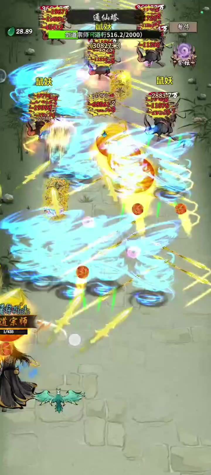 运气比较好,2.5万米暴击就满了,战斗里面的绝技选的是铜钱,火,箭,风,瓜,元磁神光,前5个升到仙就可以了,祭坛我没有选加绝技数量的,凑够9个种类后面主要就选加攻,加爆伤,减速的