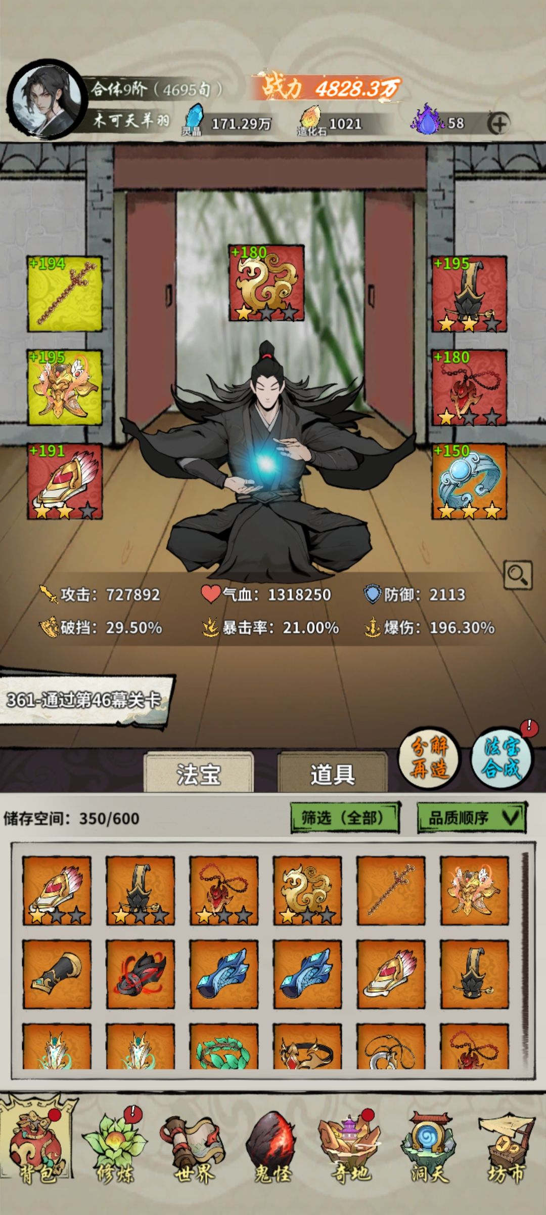 虽然血魔套是主流,但还是有一些玩家跟我一样不喜欢扣血,喜欢玩满血复活套。 武器铜钱,复活甲,无双腕,龙道纹固定死的。 识时项链吃不到低血被动,仙怒项链需要受伤也吃不到,都排除,我用的是屠戮。 至于为什么戒指不用造化,因为屠戮和元初的技能冷却被动可以叠加,在加上祭坛中的圣物也有减少技能冷却的,能叠的很高。 但缺点就是战力差上一大截,而且只有装备满级才能激活满被动,很熬人。 头饰的话我试过金灵,但总感