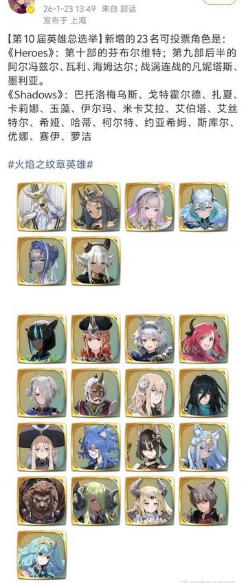 🔥《火焰纹章》官方整大活!《Shadows》系列角色获正式“入场券” 大的出现啦家人们哈哈,最近《火焰纹章英雄》这款游戏又出现了一件不得了的事情!这款由任天堂旗下知名战棋单机IP《火焰纹章》系列改编而来的手游作品,在刚公布的第10届英雄总选举可投票角色名单里,居然混进了一大堆来自《Shadows》(火焰纹章Shadows,中译为暗影、影等)中的“老朋友”,相关信息引发玩家热议。 要知道,《Sh