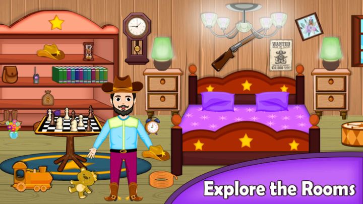 你准备好探索西部世界的牛仔生活了吗? 准备好去发现大量的玩具屋、马厩和水疗中心等着你! 成为一名职业牛仔骑手,在马厩中享受牧场、武器制作和马匹护理,并在假装牛仔游戏中探索西部城市生活。 骑马开始这个冒险之旅,探索西部城市生活。