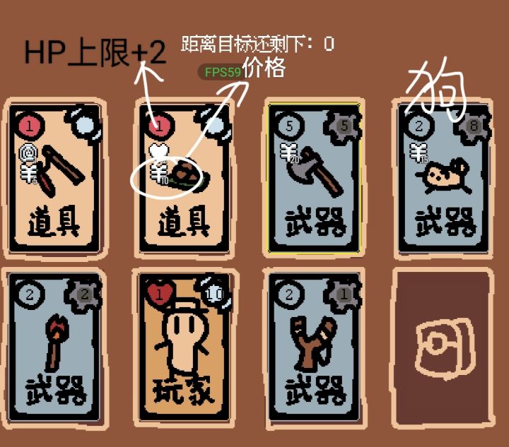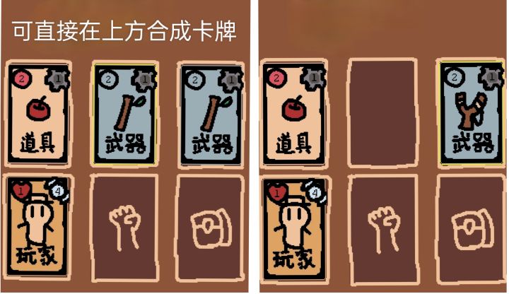 摸索了一下感觉这个游戏不算难,只要开局开好,之后就是刷刷刷了首先开局树枝+草合成火把,树枝+树枝合成弹弓,火把能把1血草转换为2伤弹药,弹弓把1伤石子转化为2伤弹药弹药如果用完了,只剩下1耐久了的话不要用第一关的树林过去之后选择第四个卡牌吃苹果(反复免费吃),然后去第三个商店买10块的加血量上线的吃掉,再去第一个草地关卡 草地关卡过了之后可以去商店(第四个)买15块2伤8耐久的狗,有信心的可