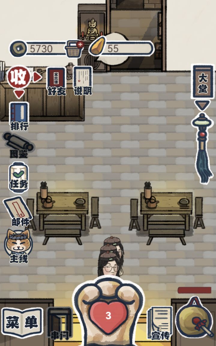 各种游戏位置遮挡,小费我都看不到,还有那个招人一定要自己敲锣吗,人真的还像一个纸片假人飘过去,不好看感觉又恐怖。