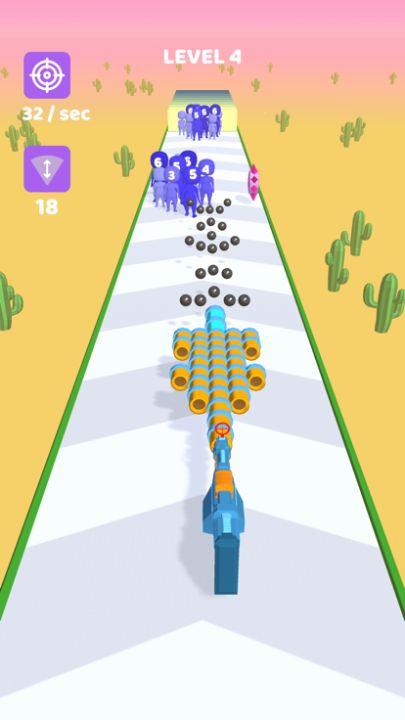 Attach the bullet multipliers to your gun in order to kill the enemies! Have fun stacking the multipliers and be careful not to loose them!