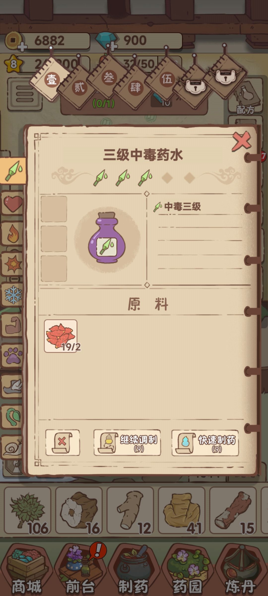 捣鼓了很久,他的配方真的难弄。我大概总结一下我目前玩到的心得,先确定你做的药水的方向,地图上会有那个小图案,然后可以利用类似小八卦阵的那个图标,你想走哪个方向,你就点那个方向的字,那么排在前面的就是你想走的那个方向的药材。而捣药的是能够让你走的路线更长,但是方向不变。此时上面的叉代表着它原本能到的位置,上面的小碗是他研磨之后能到的位置。随后再把药放到锅里面搅,他会达到他药效的位置。反正就这么调整方