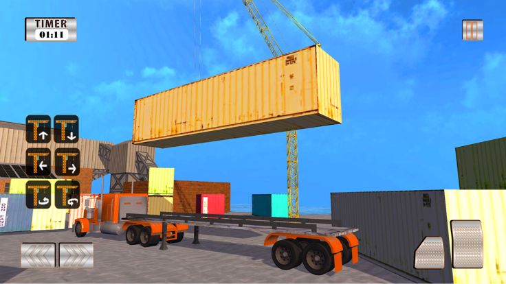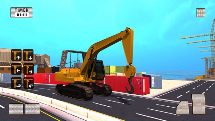 在这个强大的装载机和雄伟的起重机驾驶,在港口的货物建筑工地内。 该港口起重机可以通过手动操作帮助货船中的货物运输。 所以现在开始运输工作!