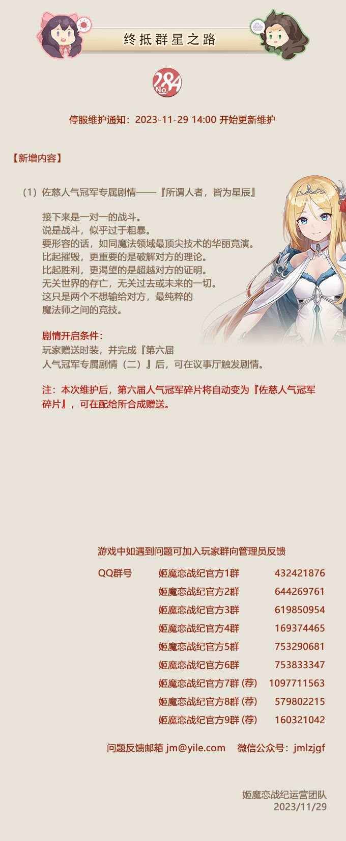 No.284 终抵群星之路《姬魔恋战纪》11月29日更新公告