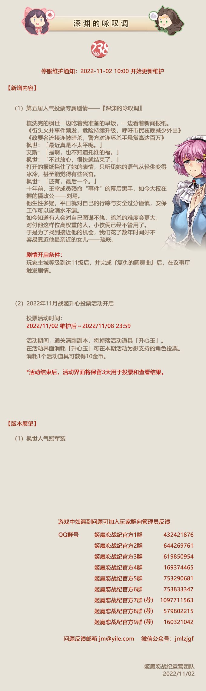 No.238 深渊的咏叹调 《姬魔恋战纪》11月2日更新公告