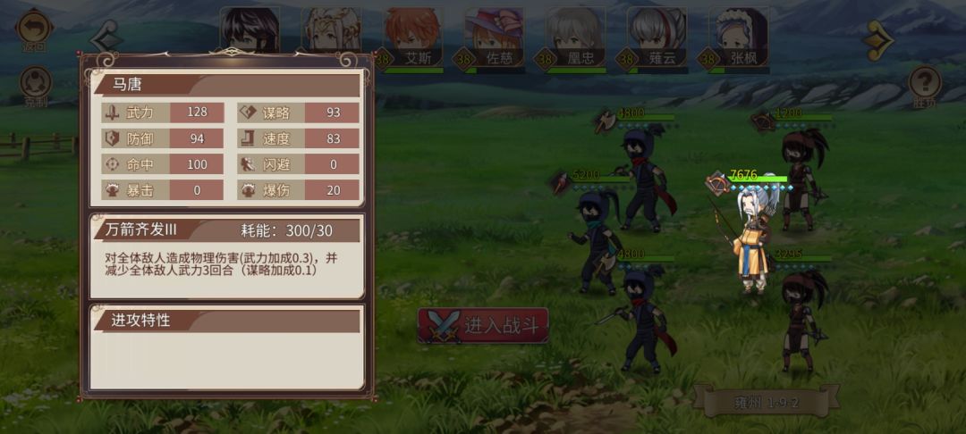 打8-2时发现由于我于吉757满宝石加上8心刘备速度仍不够开局封印蛮王,然而我又不想就此放弃,毕竟8-1过了8-2不过白白浪费兵力,所以就非常的蛋痛(ಥ_ಥ) 于是我苦思冥想结合云流泉大佬的攻略,花费两个半小时的时间,终于试出这么一套打法(:з」∠)_最终损失13人才过,真的心累(╯‵□′)╯︵┴─┴ 练度同我上一篇草原3的攻略练度,唯一不同的是我孔明打了8速度石,我懒得再重发一遍了,想看的去我上