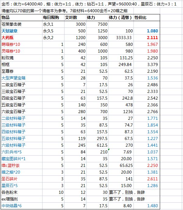 看了一下两个表格,很简单。本次活动的商店价格就是简单粗暴的把上一个活动的价格乘以2,然后算性价比的时候+1(清缴本身收益)就完事了。 贵,真的离谱。不过粉末和结晶的价格略有下调,虽然还是贵就是了。 对了,仲达服是12属性。 萌新白皮书(第四版):https://www.taptap.com/topic/14790101 第五版过段时间会开始做,等忙完。 目录: 1、与往期活动的不同及简单对比 2、